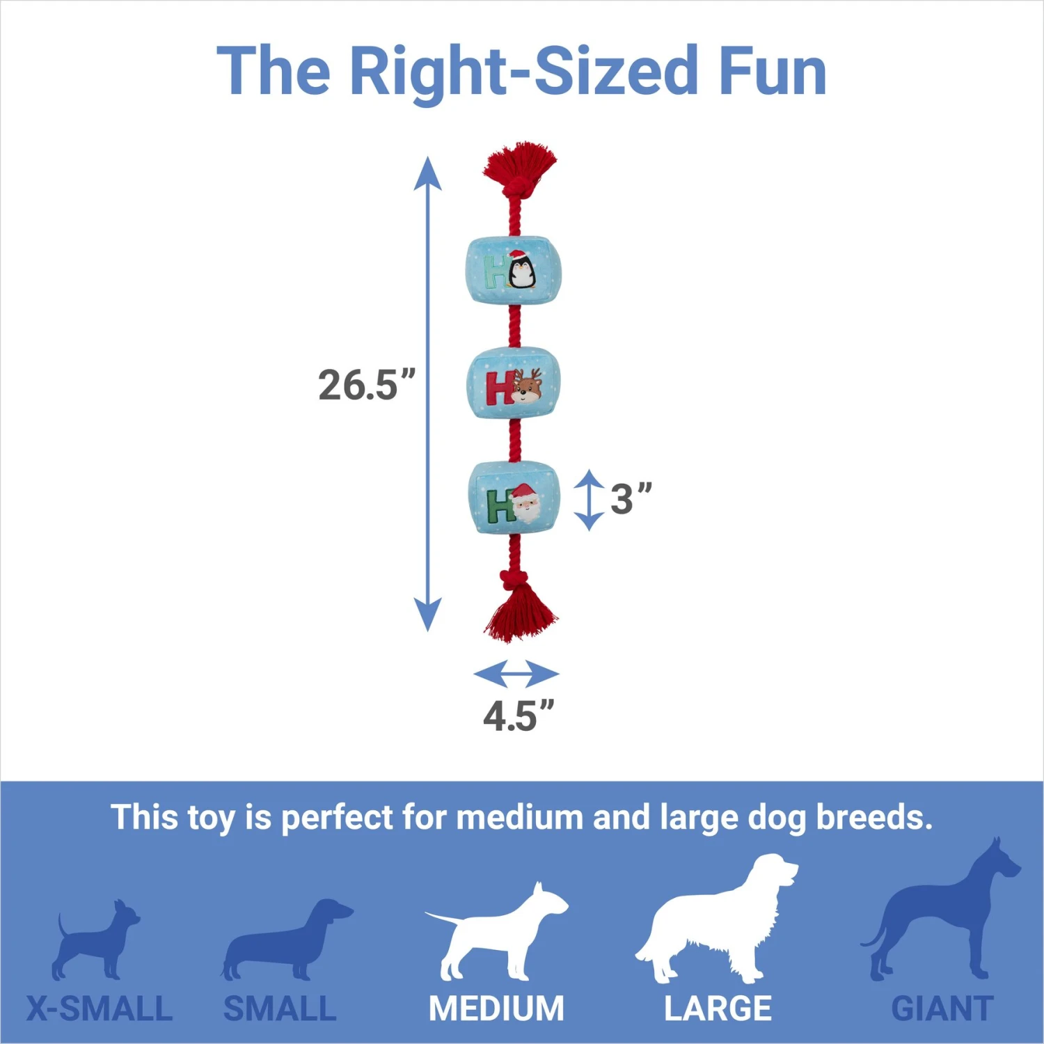 • Holiday plush cubes toy is best suited for medium and large size dog breeds.